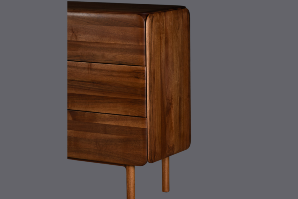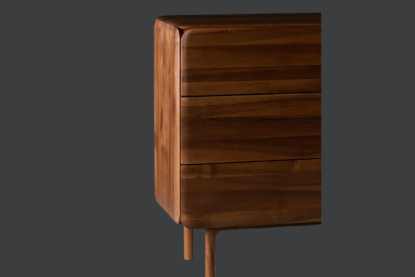 Die perfekte Verschmelzung von Funktionalität und skulpturalem Design. Dieses Highboard wurde aus hochwertigem, nachhaltig gewonnenem Massivholz gefertigt und zeichnet sich durch seine organischen Formen und elegante Ästhetik aus. Die harmonischen Rundungen und klaren Linien des Designs verleihen ihm eine zeitlose Eleganz, die in jedem Wohnraum ein Statement setzt.