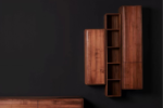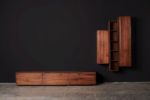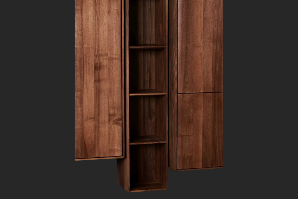 Die Module bieten eine intelligente Mischung aus offenen Ablagen und geschlossenen Fächern, ideal für die Präsentation von Büchern, Kunstwerken oder dekorativen Elementen sowie zur diskreten Aufbewahrung. Die Oberfläche wird mit umweltfreundlichen Ölen und Wachsen behandelt, um die Authentizität und Langlebigkeit des Holzes zu bewahren.