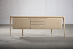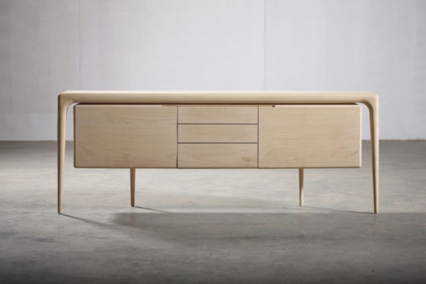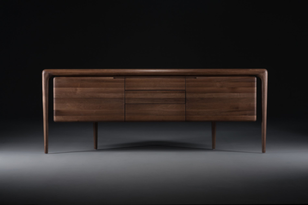 Die Latus Anrichte von Artisan, entworfen von Salih Teskeredžić, besticht durch ihr skulpturales Design mit schwebendem Effekt. Sie ist in drei Größen verfügbar: Breite 180 cm x Tiefe 40 cm x Höhe 75 cm, Breite 200 cm x Tiefe 40 cm x Höhe 75 cm und Breite 220 cm x Tiefe 40 cm x Höhe 75 cm. Gefertigt aus Massivholz wie Eiche, Nussbaum und Ahorn, mit grifflosem Push-to-Open-System und natürlicher Ölveredelung – eine perfekte Kombination aus Funktionalität und Design.