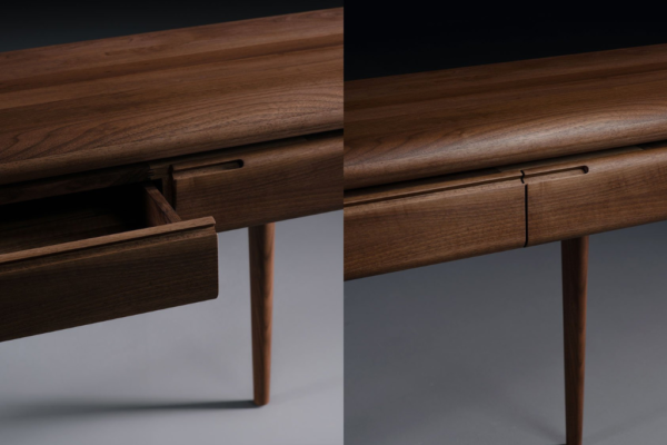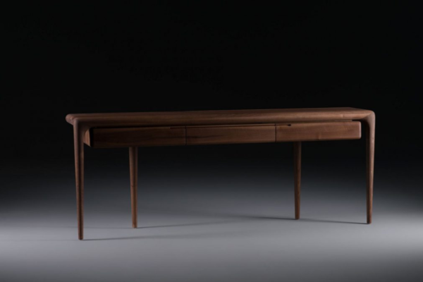 Der ARTISAN Latus Konsolentisch ist ein Ausdruck von Eleganz und handwerklicher Perfektion. Gefertigt aus nachhaltig gewonnenem Massivholz wie Eiche, Walnuss oder Esche, besticht er durch seine schlanke Silhouette, sanft geschwungene Linien und eine perfekt ausbalancierte Form.