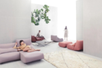 Absent ist ein modulares System, das unterschiedliche Höhen der Rückenlehnen mit drei verschiedenen Sitztiefen kombiniert, wodurch ein individuelles Entspannungserlebnis entsteht. Leicht nach innen gewölbte Endmodule nehmen pulsierende und dynamische Formen mit einem Hauch von glatten und futuristischen Strukturen an.