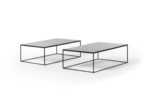 Ob als Gruppe oder Solitär – die Frame Kaffeetische präsentieren sich mit einem sehr breit gefächerten Nutzungsspektrum. Die jeweilige Höhe bestimmt ihre Position als zentraler Beistelltisch oder als Kaffeetisch. In den aus dünnen rechteckigen Metallprofilen bestehenden Rahmen wird die Fläche mit einem kompakten Kern oder Glas eingelassen.