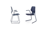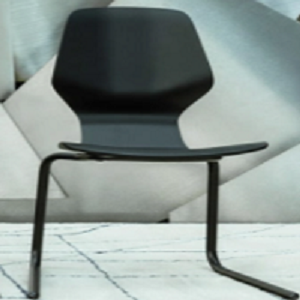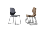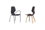 Ungeachtet der Unterschiede in der Technologie und Typologie von seinen gepolsterten Geschwistern behält dieser Abkömmling der Oblique-Familie das charakteristische S-förmige Profil des Stuhls bei. Die starke Krümmung der Schale sorgt für eine gute Ergonomie, die durch die Elastizität dieser Geometrie noch unterstrichen wird. Die Schale besteht aus 2D-geformtem Sperrholz, kombiniert mit 6 Versionen von Stahlbeinen, von denen 4 stapelbar sind, und einem Massivholzgestell.