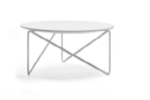 Drei Tische haben die gleiche formale Herkunft wie der Polygon-Sessel. Von der Seite her gesehen kommt die dominante Dreiecksform zum Ausdruck. Doch sobald der Betrachter sich zu bewegen beginnt, überlagern sich drei Dreiecke des Untergestells zu komplexen dreidimensionalen Zeichnungen. Die Höhe und die Oberfläche der Tischplatten sind kontrapunktiert, was zu radikalen Neigungsunterschieden der diagonalen Linien der Stahlstäbe führt. Der Couchtisch Polygon kommt in zwei neuen Größen. Der niedrige Tisch mit einem Durchmesser von 84 cm und der höhere mit einem Durchmesser von 60 cm. Die Tischplatte kann aus Massivholz, MDF mit Fenix- oder HPL-Platten für den Außenbereich geeignet sind. Die als Halterung gebogene Konstruktion der Metallstäbe passt ideal zur modernistischen Typologie des Polygon-Sessels.