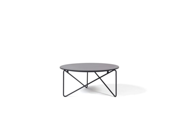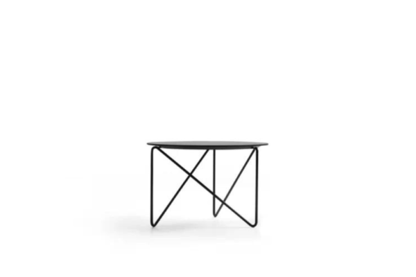 Drei Tische haben die gleiche formale Herkunft wie der Polygon-Sessel. Von der Seite her gesehen kommt die dominante Dreiecksform zum Ausdruck. Doch sobald der Betrachter sich zu bewegen beginnt, überlagern sich drei Dreiecke des Untergestells zu komplexen dreidimensionalen Zeichnungen. Die Höhe und die Oberfläche der Tischplatten sind kontrapunktiert, was zu radikalen Neigungsunterschieden der diagonalen Linien der Stahlstäbe führt. Der Couchtisch Polygon kommt in zwei neuen Größen. Der niedrige Tisch mit einem Durchmesser von 84 cm und der höhere mit einem Durchmesser von 60 cm. Die Tischplatte kann aus Massivholz, MDF mit Fenix- oder HPL-Platten für den Außenbereich geeignet sind. Die als Halterung gebogene Konstruktion der Metallstäbe passt ideal zur modernistischen Typologie des Polygon-Sessels.