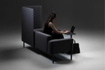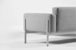 Rostrum ist ein unendlich skalierbares Sofasystem mit einer hochentwickelten Designsprache, die seinen Namen von einer erhöhten Rednerbühne hat – eine Anspielung auf die schlanken Beine, die die modularen Sitzelemente und Accessoires über den Boden heben. Diese erhöhte Struktur umschließt anmutig die weiche Polsterung und reduziert das visuelle Gewicht des Sofasystems. Es ermöglicht auch die Verwendung eines minimalen, leichten Rahmensystems, das als charakteristisches Element für eine Reihe von CMF-Ausdrucken fungiert, mit der Möglichkeit, Materialien, Farben und Oberflächen zu mischen und aufeinander abzustimmen. Die intuitive Funktionalität des Zubehörs – wie das einfache Drehen des höhenverstellbaren Tisches – ergänzt die architektonischen Formen. Diese linearen Formen werden durch das gerippte Detail der Trennwände, das die schlanken Beine widerspiegelt, noch betont, während die Kraft nahtlos in die Rahmenstruktur integriert ist.