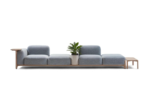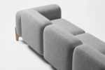 Sabot ist eine spielerische Anordnung abstrakter Volumina, getragen von charaktervollen Holzbeinen, die Holzbearbeitungsfähigkeit von Prostoria zelebrieren. Das modulare Sofasystem hat seinen Namen von einer Art einfacher Holzschuhe – eine Anspielung auf diese Holzbeine. Die weiche und zugängliche Designsprache ist von Wohnräumen inspiriert und verleiht Geschäftsräumen eine starke spielerische Identität. Jedes Modul hat eine superweiche, freundliche Silhouette, die wie eine Wolke über den freiliegenden Holzbeinen schwebt. Die Module können kombiniert werden, um lineare oder Inselkonfigurationen zu schaffen. Das bewegliche Seitenzubehör – einschließlich Tische und Trennelemente – ahmt die schwebende Sprache dieser Sitzmodule nach, während Pflanzgefäße die Möglichkeit bieten, grüne Sichtschutzwände zu schaffen. Sabot kann konfiguriert werden, um lineare 2-, 3- oder 4-Sitzer-Sofas sowie asymmetrische S-förmige Konfigurationen zu schaffen, die zusätzliche Privatsphäre zwischen den Sitzplätzen ermöglichen. Die Module können auch zu Inseln oder Clustern miteinander angeordnet werden. Diese flexiblen Konfigurationen aus niedrigen Tischplatten, Hockern und Sitzmodulen bieten Sitzgelegenheiten mit gemischter Kapazität für dynamische Räume wie Breakout-Zonen, Lobbys und Rezeptionen.