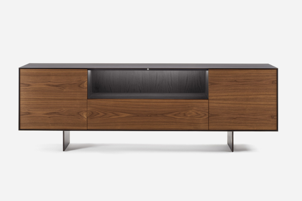 Die Latus Anrichte von Artisan, entworfen von Salih Teskeredžić, besticht durch ihr skulpturales Design mit schwebendem Effekt. Sie ist in drei Größen verfügbar: Breite 180 cm x Tiefe 40 cm x Höhe 75 cm, Breite 200 cm x Tiefe 40 cm x Höhe 75 cm und Breite 220 cm x Tiefe 40 cm x Höhe 75 cm. Gefertigt aus Massivholz wie Eiche, Nussbaum und Ahorn, mit grifflosem Push-to-Open-System und natürlicher Ölveredelung – eine perfekte Kombination aus Funktionalität und Design.