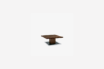 Quadratischer oder rechteckiger Couchtisch völlig aus Massivholz, mit einem Bein aus verleimten Leisten, innen leer, und Bodenplatte aus Eisen.