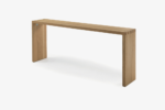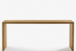 Konsole völlig aus verleimten Massivholzleisten gefertigt, mit geraden Kanten und Schwalbenschwanzverbindung zwischen Platte und Gestell.