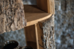 Bücherregal aus Briccola Massivholz; die Regalböden sind aus Eiche. Schlichte Säuleform mit verschiedenen Regalbrettern, um nützliche offene Fächer zu erschaffen. Aussen sind Briccola-Stücke mit belassenen Baumrinden.