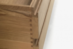 Sideboard aus Massiv- und Furnierschichtholz, verfügt über Drehtüren, Schubladen mit Schwalbenschwanzverbindungen und Sockel aus Massivholz.