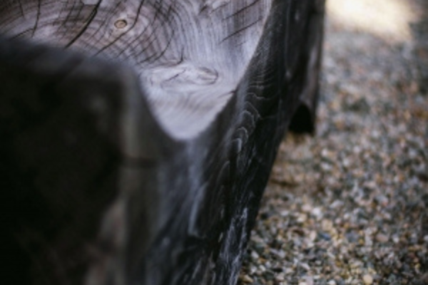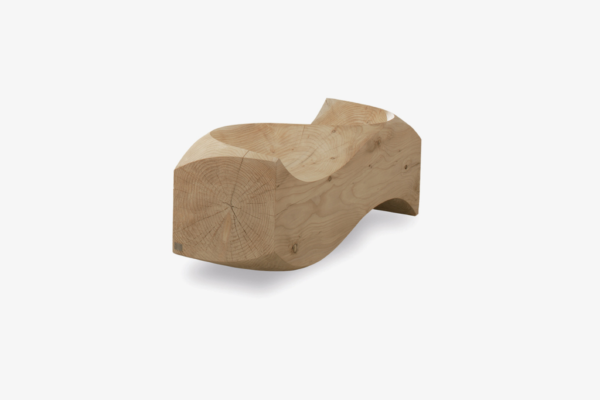 Bank aus einem einzigen massiven Block duftendes Zedernholzes gewonnen. Mit originellem und ergonomischem Design, sie ermöglicht vis-à-vis-Kontakt mit anderen Personen.