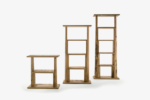 Regalsystem völlich aus Briccola Massivholz, bestehend aus 2 seitlichen Pfählen und einer Reihe von festen Fachböden mit geraden Kanten- In drei verschiedenen Höhen erhältlich.