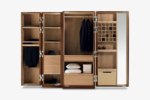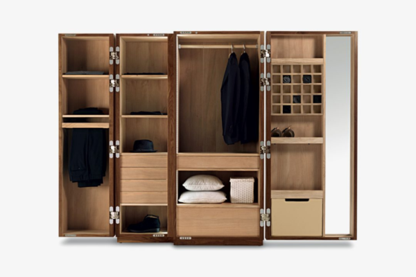 Schrank aus Tischlerplatte und Massivholz mit asymmetrischen glatten Türen mit Metallgriff. Traditionelle Schrankkoffer auf moderne Weise interpretiert, mit funktioneller Innenausstattung aus duftendem Zedernholz, ideal gegen Kleidermotten. Mit LED-Beleuchtung ausgestattet. STANDARD INNENAUSSTATTUNG: GEMÄß SKIZZE