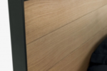 Bett aus furnierter Tischlerplatte Kopfteilrahmen aus Eisen und Bettrahmen aus Massivholz, mit integrierten Nachttischen. STANDARD VERSION: HÖHENVERSTELLBARER LATTENROST; AUF ANFRAGE FESTER LATTENROST, GLEICHER PREIS (wenden Sie sich bei Fragen an die Verkaufsabteilung); GESTELL UND KOPFTEILRAHMEN AUS EISEN IRONDUST LACKIERT (B2)