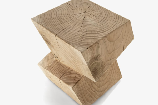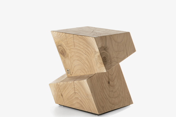 Hocker aus einem einzigen massiven Block duftendes Zedernholzes gewonnen, deren Form ein Tribut an die kubischen Häuser des holländischen Architekten Piet Blom ist. Bei dem Barhocker dient der untere Teil als Fußstütze.