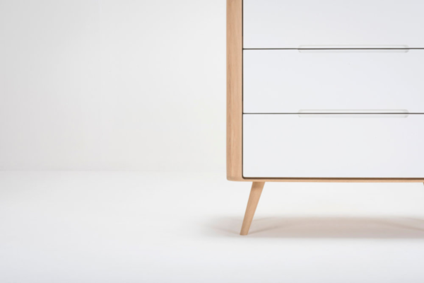 Die Kommode Ena 135 cm /180cm ist mit ihrem stilvollen skandinavischen Design, eine Schönheit in der Innenaussstattung. Der hochwertigen Korpus ist aus massiver Eiche.. Auf dem Korpus befinden sich vier mit Soft-Close-Funktion und zwei Türen, die sich in zwei Regale auf jeder Seite öffnen. Das Massivholzgestell ist in zwei Farben erhältlich – weiß oder naturgeölt. Produktfotos haben eine weiße Fläche. Schauen Sie sich auch andere Kommoden und Schränke aus der Ena-Serie an.