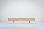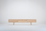 Die Latus Anrichte von Artisan, entworfen von Salih Teskeredžić, besticht durch ihr skulpturales Design mit schwebendem Effekt. Sie ist in drei Größen verfügbar: Breite 180 cm x Tiefe 40 cm x Höhe 75 cm, Breite 200 cm x Tiefe 40 cm x Höhe 75 cm und Breite 220 cm x Tiefe 40 cm x Höhe 75 cm. Gefertigt aus Massivholz wie Eiche, Nussbaum und Ahorn, mit grifflosem Push-to-Open-System und natürlicher Ölveredelung – eine perfekte Kombination aus Funktionalität und Design.